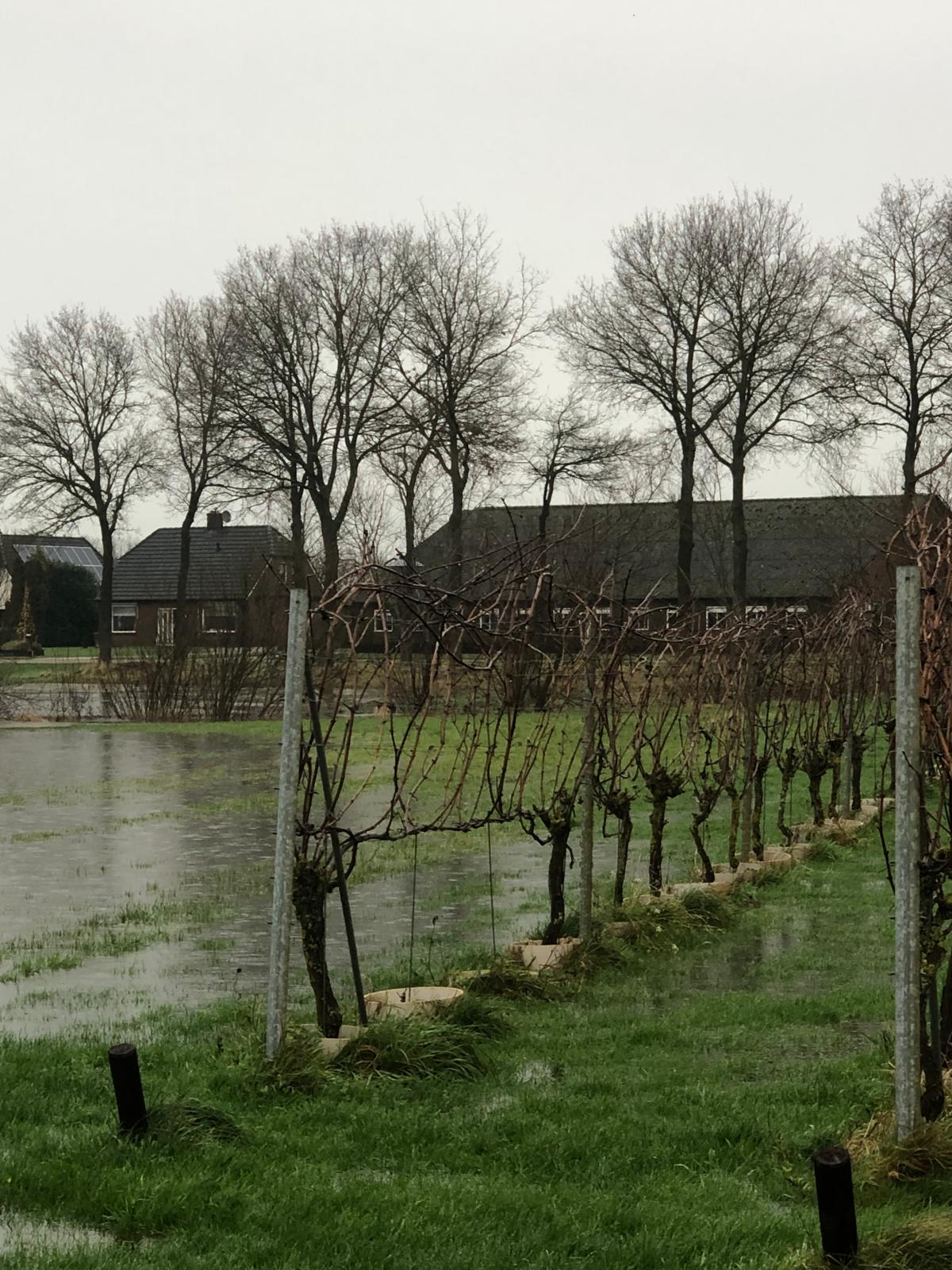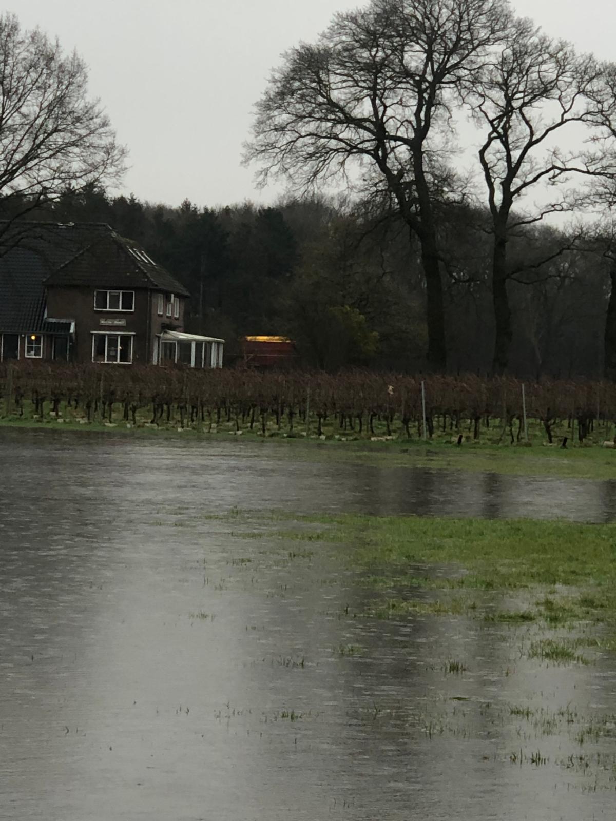 Hoog water in de vecht, spannend in de wijngaard